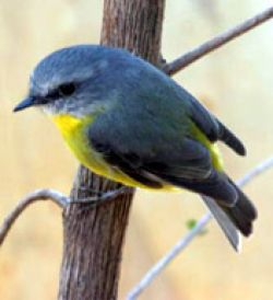 The Silvereye is a small bird with a conspicuous ring of white feathers around the eye, and belongs to a group of birds known as white-eyes. The Silvereye shows interesting plumage variations across its range. The grey back and olive-green head and wings are found in birds through the east, while western birds have a uniformly olive-green back. Breeding birds of the east coast have yellow throats, pale buff flanks (side of the belly) and white on the undertail. Tasmanian birds have grey throats, chestnut flanks and yellow on the undertail. To complicate this, the birds in the east have regular migrations within Australia and may replace each other in their different areas for parts of the year.