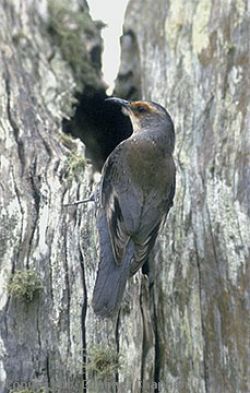 The Brown Cuckoo-Dove is a large brown pigeon of rainforests, with a very long, tapering tail. There is a pale streak below the blue-grey eye and a red eye-ring. The female has a brighter chestnut cap and a scaly pattern on the breast. The legs and feet are red. Their flight is strong and graceful, usually low among the trees. This species is also known as the Brown Pheasant or Large-tailed Pigeon.